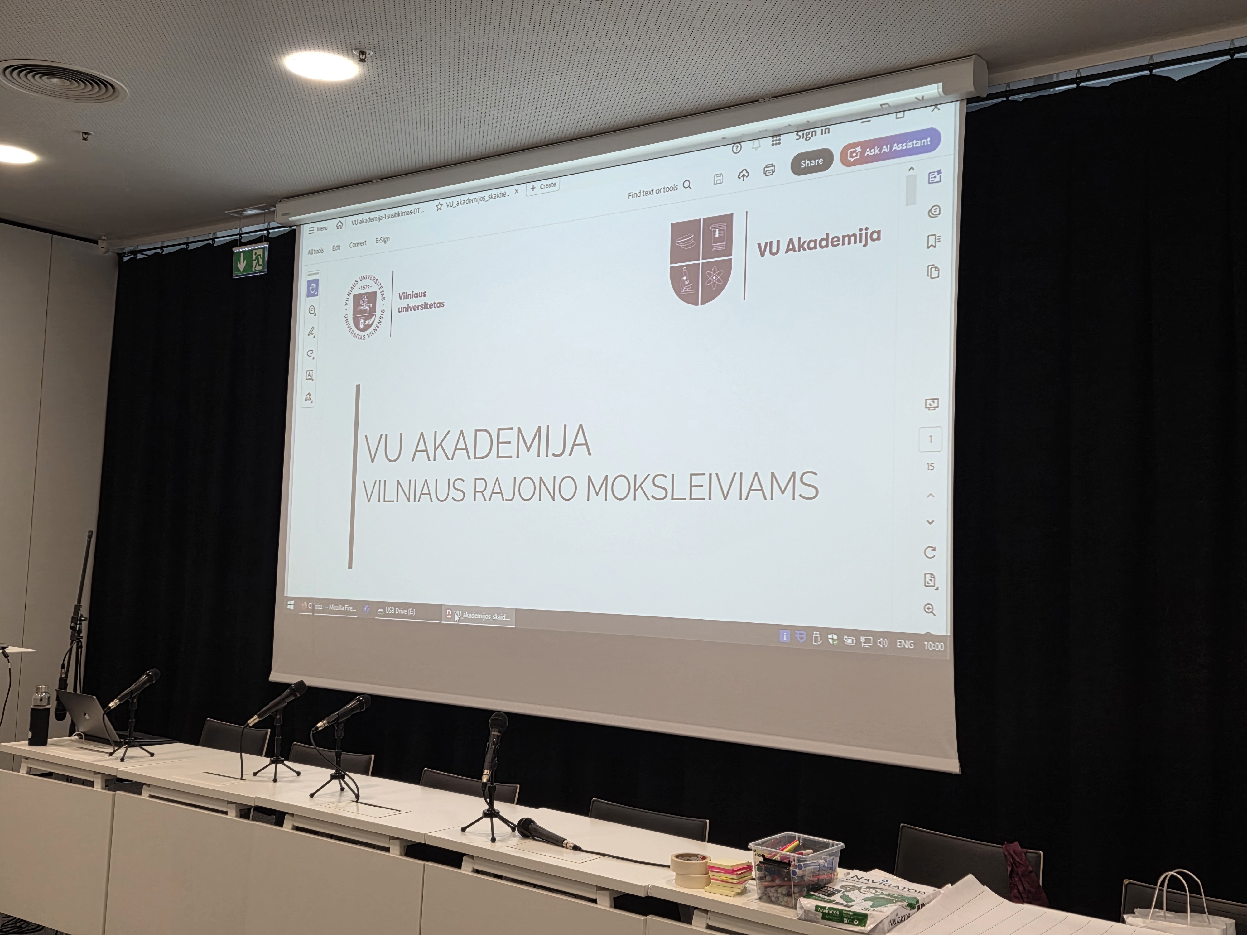 4 października rozpoczął się wspólny projekt Uniwersytetu Wileńskiego (VU) i Samorządu Rejonu Wileńskiego „Akademia dla uczniów rejonu wileńskiego”, w którym uczestniczą również uczniowie klas 10–11 naszego gimnazjum.