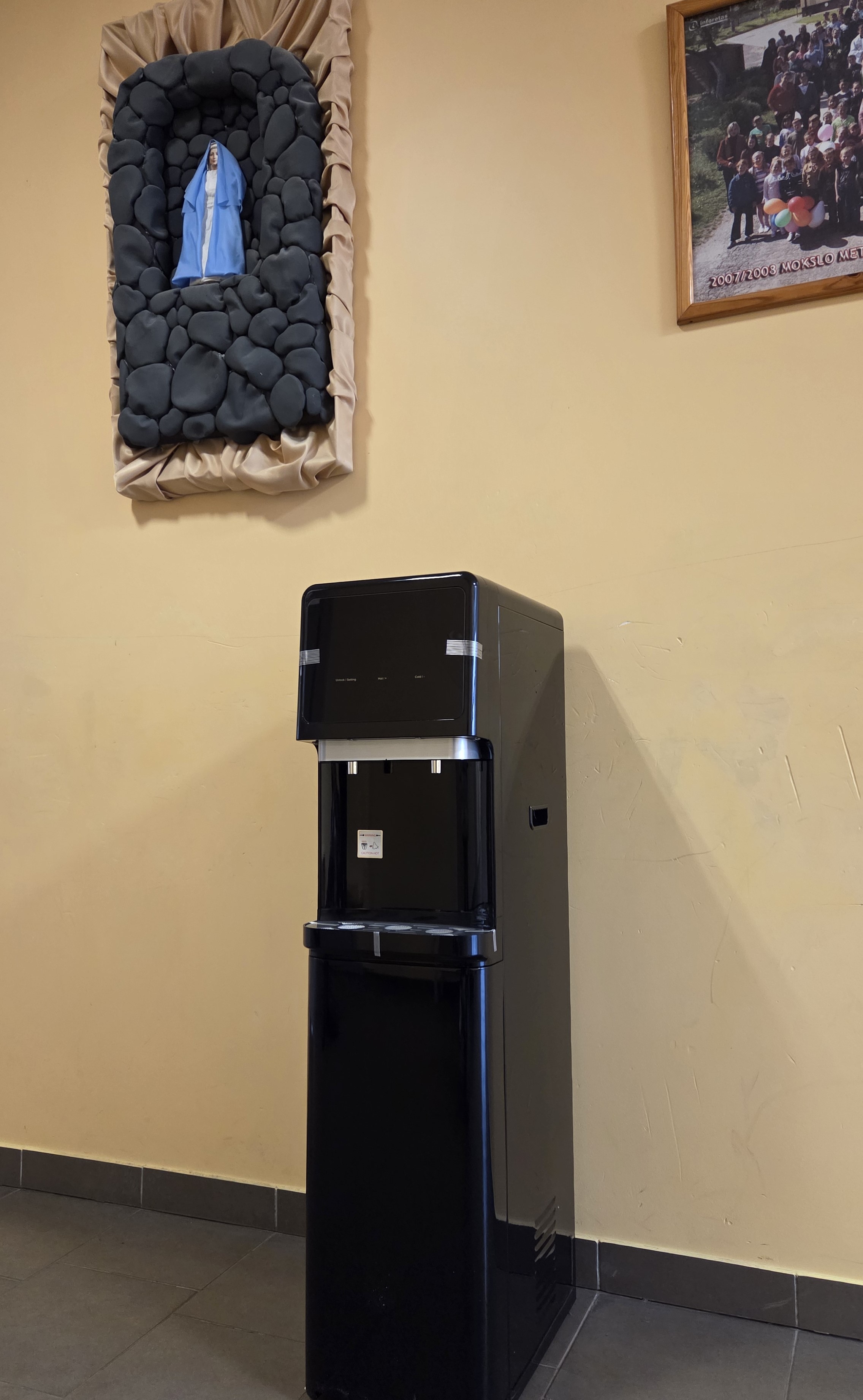 Zamontowane urządzenia BLACK DIAMOND 75 to nowoczesne i wydajne filtry oparte na technologii odwróconej osmozy, zapewniające najwyższą jakość wody. Dzięki systemowi 75G RO, kompresyjnemu chłodzeniu oraz funkcji podgrzewania wody nawet do 95°C, uczniowie i nauczyciele szkoły mogą korzystać ze świeżej, czystej i zdrowej wody.