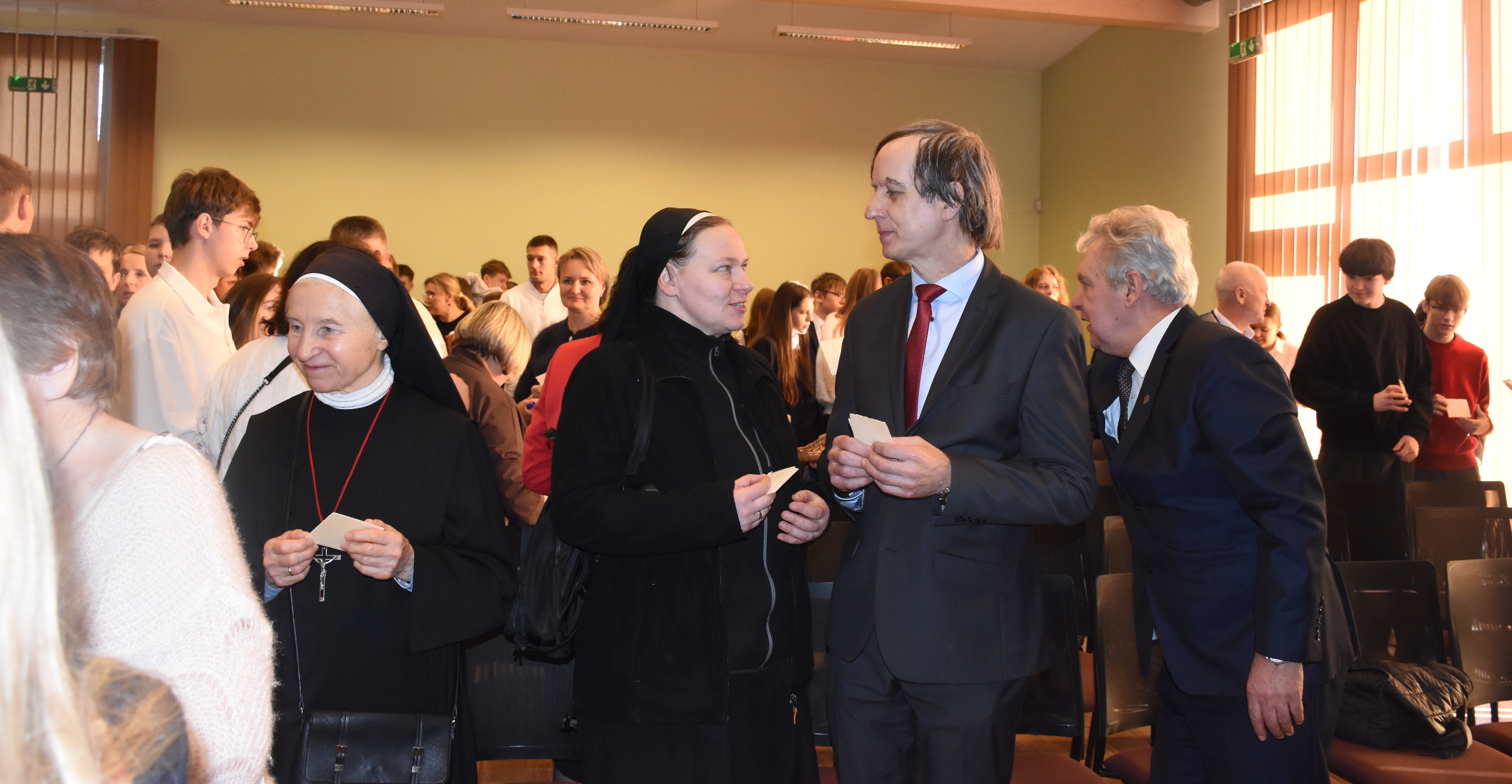 Uroczystość swą obecnością uświetnili również księża oraz siostry zakonne. Nie zabrakło byłych pracowników — nauczycieli, wychowawców i pracowników administracji, którzy przez lata współtworzyli atmosferę szkoły. Wzruszające powitania, serdeczne rozmowy i wspomnienia dawnych lat sprawiły, że świąteczne spotkanie stało się nie tylko okazją do wspólnego świętowania, lecz także do budowania mostów między przeszłością a teraźniejszością.