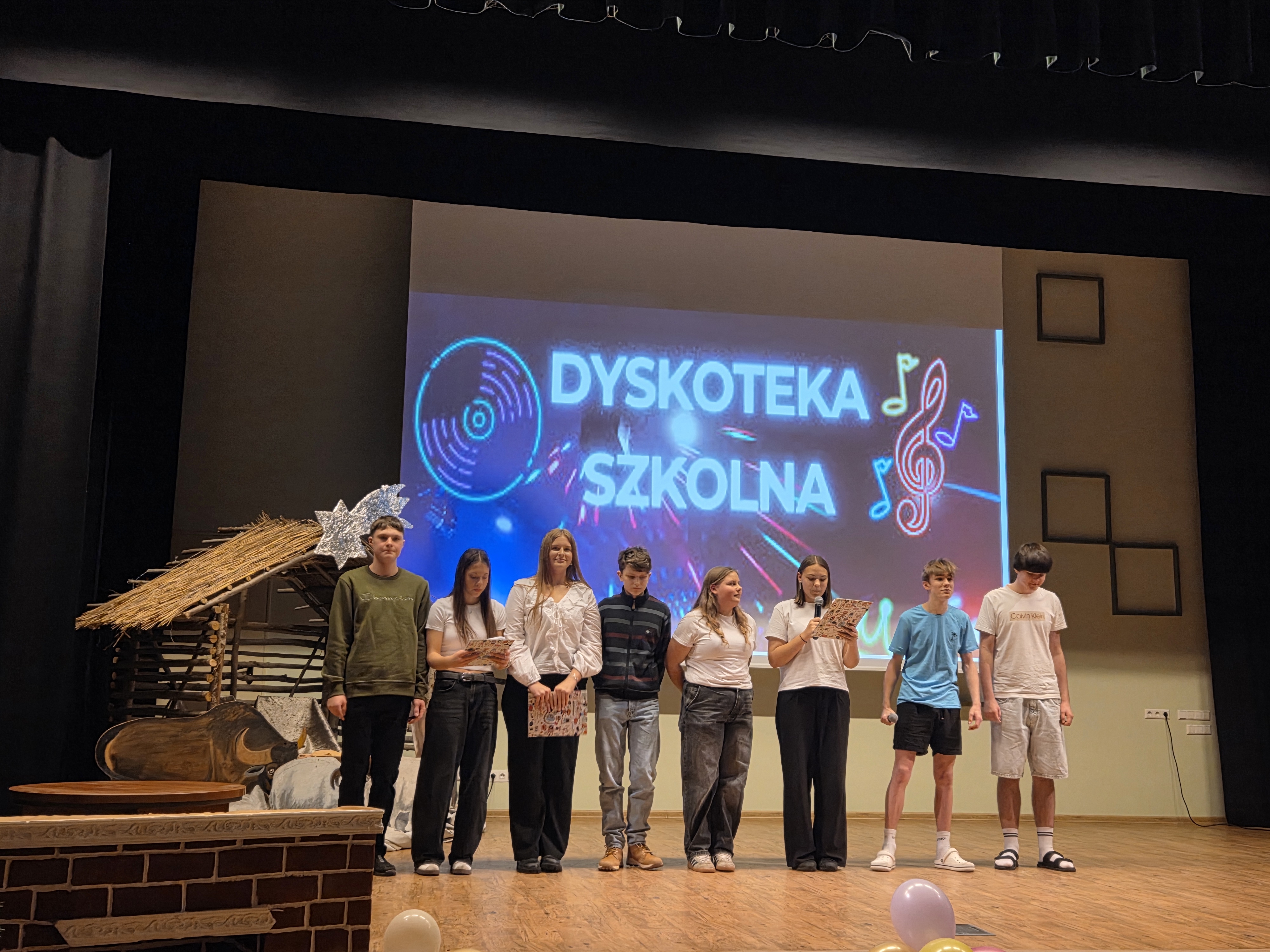 30 grudnia w gimnazjum było gwarno i świątecznie. Najbardziej ulubiona impreza zgromadziła uczniów starszych klas, nauczycieli, rodziców. Zaczynając od piątaków wszyscy wesoło bawili się na noworocznym karnawale. Każda klasa przygotowała występ. Nie zabrakło krótkich scenek, piosenek, tańca, konkursów, filmików, zagadek. Nawet przybyli rozśpiewani Cyganie. Następnie wszyscy w swoim klasowym rodzinnym gronie zasiedli przy stołach, by razem podzielić się wrażeniami. A gdy zabrzmiała muzyka, szkolna aula wypełniła się tancerzami. Tańczono do upadłego, a niektórzy próbowali również zaśpiewać.